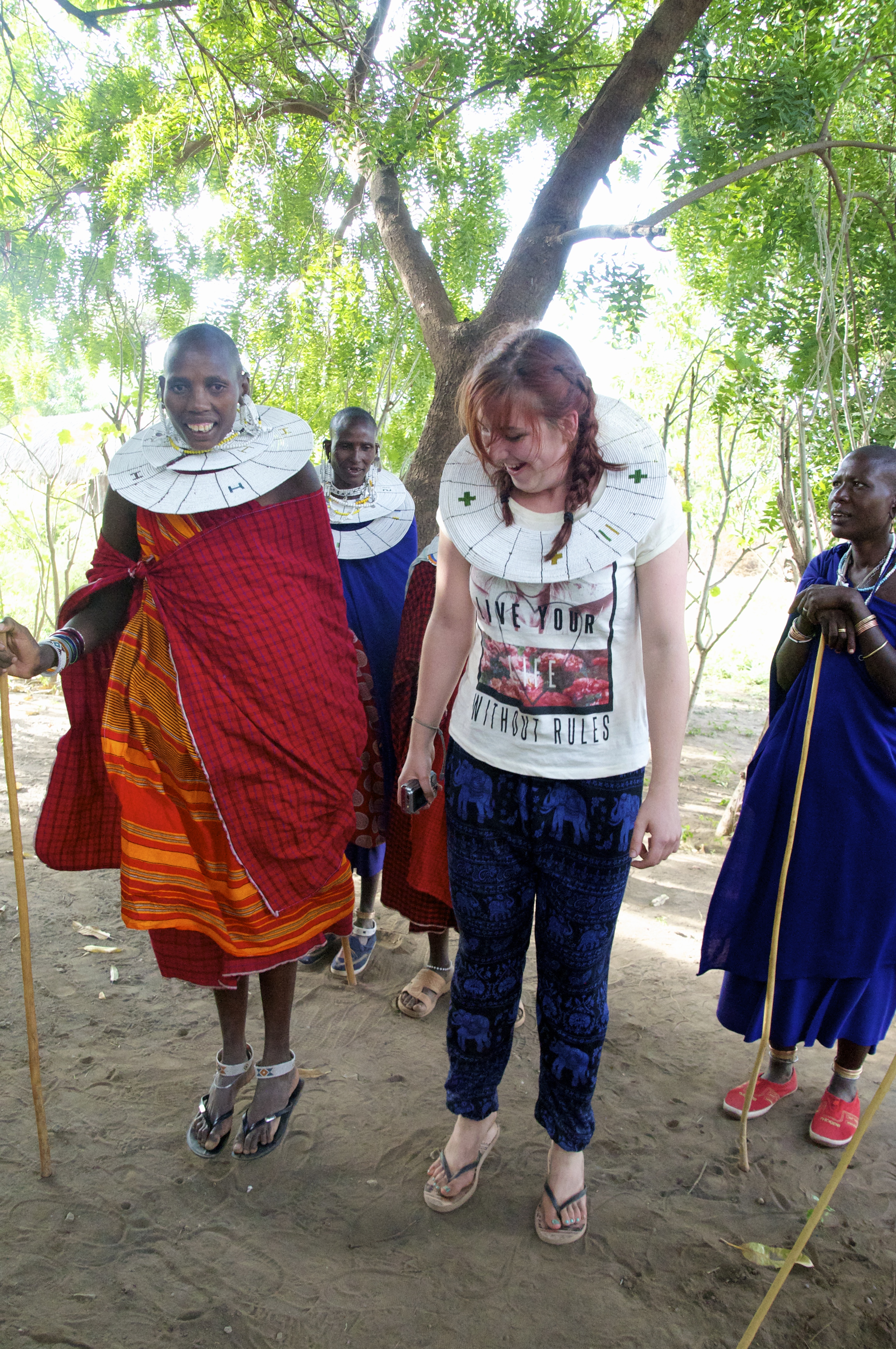 My favorite adventure involved a lot of dancing and a lot of laughter. One afternoon, the Maasai mamas came over to officially welcome us with their songs and traditional dances. Never before have my white girl moves been so hilariously out of place. As much as I love to dance, I quickly realized that God did not bless me with the fluid rhythm that He gave these women. Despite our lack of skill, the mamas did their best to teach us how to dance with the big white necklaces that so often characterize the Maasai women. Little did we know that we’d be using these dance moves to participate in a traditional Maasai “disco” later that day, which is their version of a night club or mixer. The warriors stand on one side of the circle, singing and chanting and taking turns jumping as high as they can to prove their manhood. The women stand on the other side and when the men finish, it’s their turn to dance in the middle and use their moves to try to attract the attention of a warrior. (Those who know me well are probably laughing right now at the idea of me dancing in the middle of a circle of Maasai. It happened, I promise.) These discos can go on for hours and are one of the many ways to find a suitable husband or wife. Luckily, Emily and I didn’t have to make that kind of commitment!